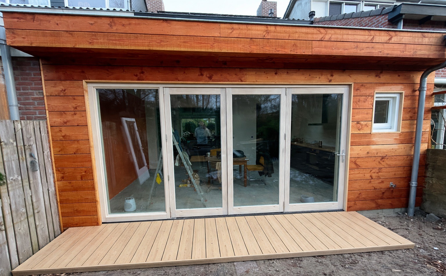 • accoya harmonica vouwdeuren met accoya vlonder transparant