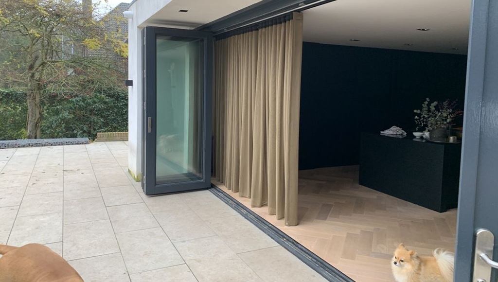 Een vouwwand, ook wel harmonicadeur genoemd, bestaat doorgaans uit drie tot zeven panelen en biedt maximale flexibiliteit in gebruik. U heeft de keuze om de panelen naar binnen of naar buiten te laten vouwen. Daarnaast kan de volledige wand naar één zijde worden geschoven, zowel links als rechts. Bij sommige vouwwanden is zelfs een combinatie mogelijk: een deel schuift naar links en het andere naar rechts, waardoor een ruime opening precies in het midden ontstaat. Zo creëert u moeiteloos een open en stijlvolle verbinding tussen binnen en buiten.